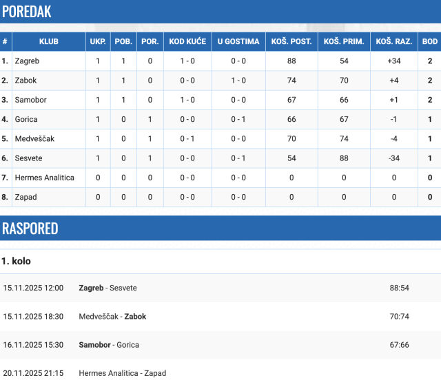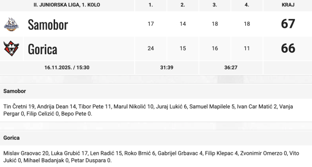 Prvo kolo 2. juniorske lige pod ingerencijom Košarkaškog saveza Zagreba Risovima Marina Sedlara donijelo je domaći susret protiv Gorice, odigran u Sportskoj dvorani Samobor.